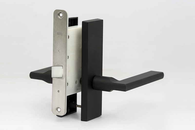 This type of mortise lever handle lock is designed without locking. It is used on doors where locking is prohibited or not required. The shell material of the lock body is POM and the bolt is made of plastic POM and stainless steel to ensure the safety and less noise. The appearance is stylish and uses a sleek design. The surface treatment adopts Japanese advanced technology. Various tests are carried out in accordance with Japanese JIS standards to ensure the durability of the lock both from the appearance and structure
