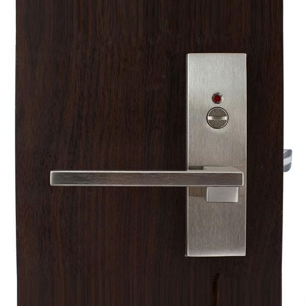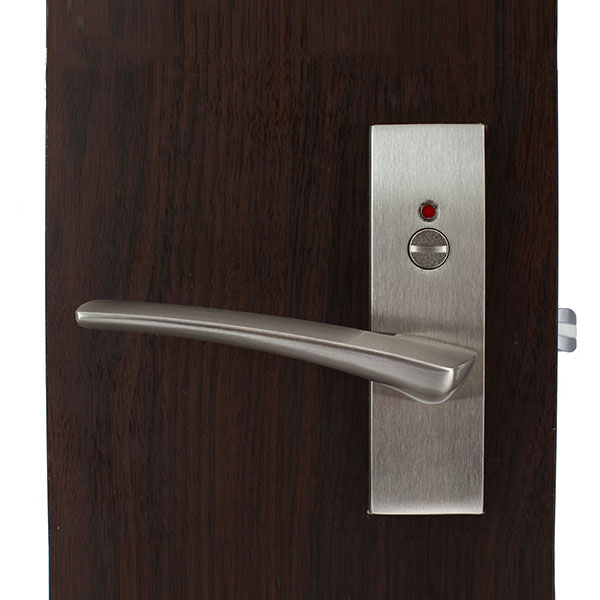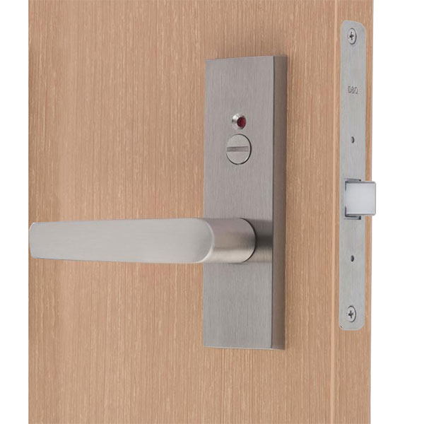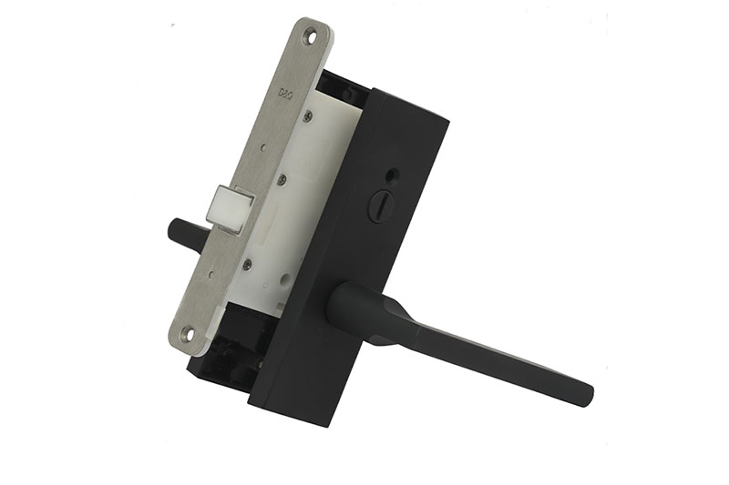 This type of mortise lever handle lock adopts a key less locking design. It could be locked with a knob from inside and unlocked with a coin from outside. Locking status could be displayed on the outer panel. When there is a state of emergency and the door is locked, it could be quickly unlocked from outside. The lock body shell is made of POM and the handle is made of aluminum alloy to ensure the firmness of the lock. The bolt is made of plastic POM and stainless steel which reduces the noise and achieves a better mute effect. The surface treatment adopts Japanese advanced technology. Various tests are carried out in accordance with Japanese JIS standards to ensure the durability of the lock both from the appearance and structure.