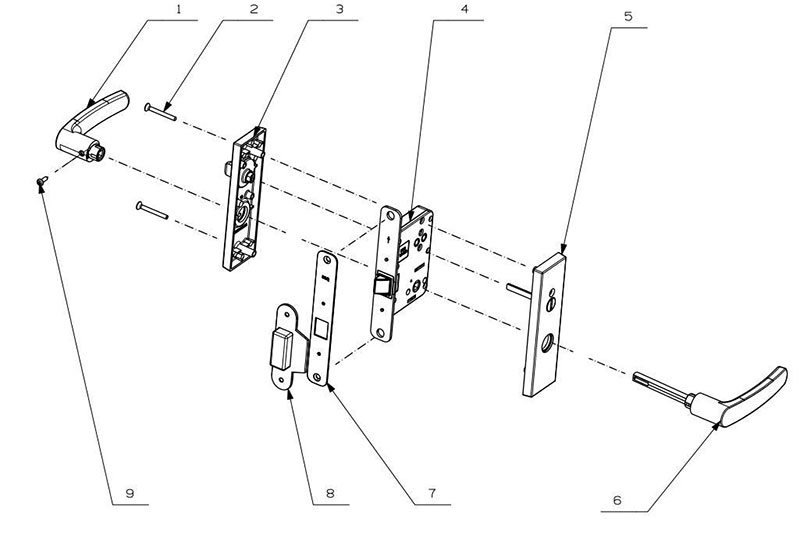 | 1 | Inner Lever Handle | 6 | Outer Lever Handle |
