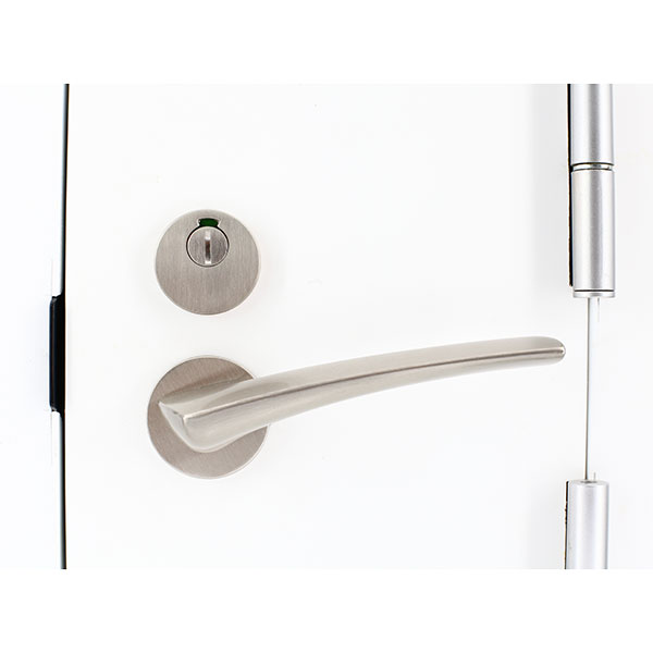 This type of mortise lever handle lock adopts a key less locking design. It could be locked with a knob from inside and unlocked with a coin from outside. Locking status could be displayed on the outer panel. When there is a state of emergency and the door is locked, it could be quickly unlocked from outside. The lock body shell is made of POM and the handle is made of aluminum alloy to ensure the firmness of the lock. The bolt is made of plastic POM and stainless steel which reduces the noise and achieves a better mute effect. The surface treatment adopts Japanese advanced technology. Various tests are carried out in accordance with Japanese JIS standards to ensure the durability of the lock both from the appearance and structure.