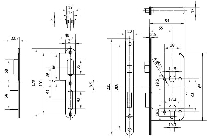 Install the striking plate on the door frame’s corresponding position. After determining the door opening direction, install the wrought iron striking plate. Ensure the latch both and dead bolt move freely in and out. Notice: 8.5mm center line deviation on striking plate and lock body.